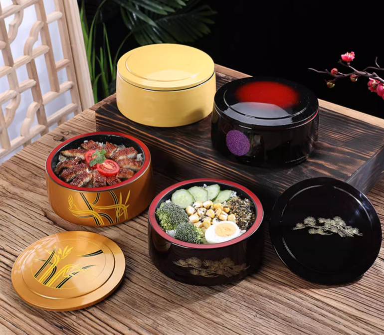 Hộp được làm từ nhựa cao cấp phủ lớp sơn mài men bóng giúp sản phẩm luôn sáng bóng, sạch sẽ và dễ dàng vệ sinh sau khi sử dụng. Thiết kế dáng bát thấp, chắc tay, có nắp đậy tiện lợi, rất thích hợp cho cả những bữa ăn gia đình ấm cúng lẫn phục vụ trong nhà hàng Nhật – Hàn cao cấp.