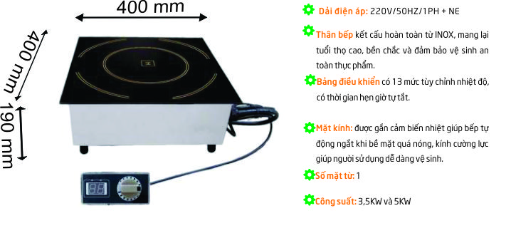 Bếp từ buffet cao cấp là loại bếp chuyên dụng cho các nồi nấu buffet. Sản phẩm được thiết kế đặt âm bàn. Đảm bảo tính thẩm mỹ và tạo không gian rộng rãi.