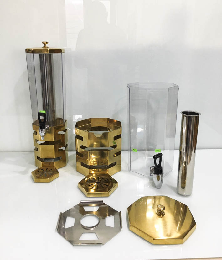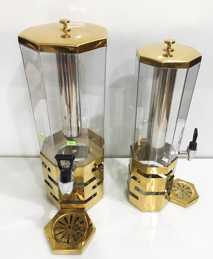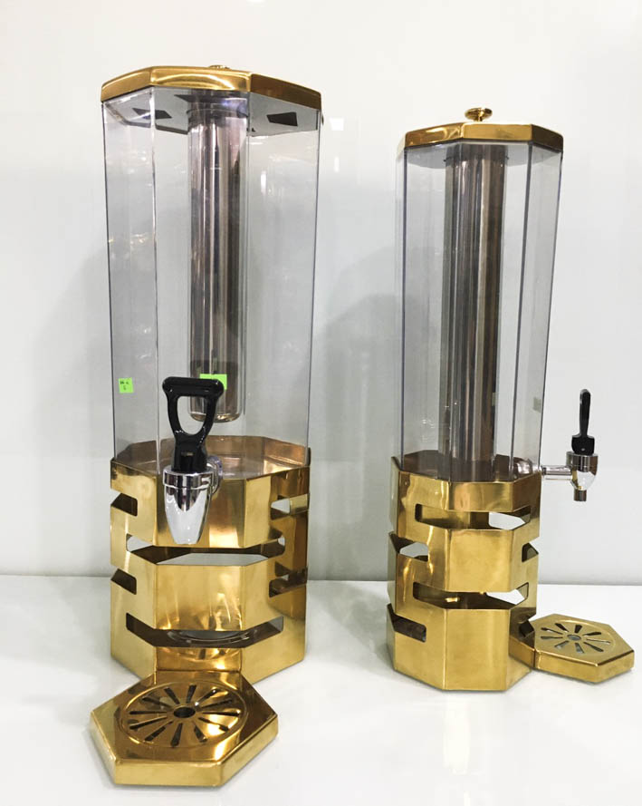 Bình đựng nước trái cây bát giác mạ vàng là món đồ đựng được rất nhiều các chủ đầu tư. Tại các quán bar, club, nhà hàng và khách sạn yêu thích và sử dụng bình. Sản phẩm đem lại cho không gian của các bàn ăn, bàn tiệc,... Sang trọng hơn và độ thẩm mỹ dành cho không gian được trưng bày bình được đẹp hơn.
