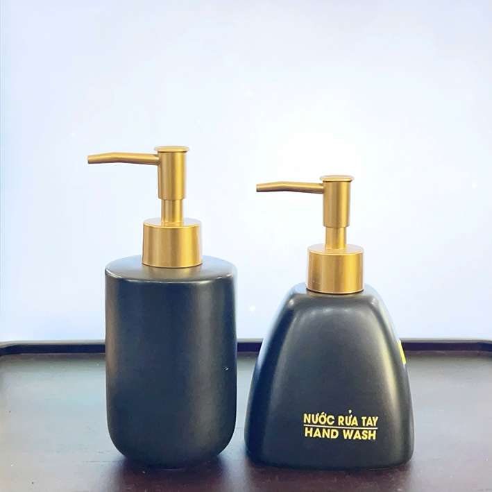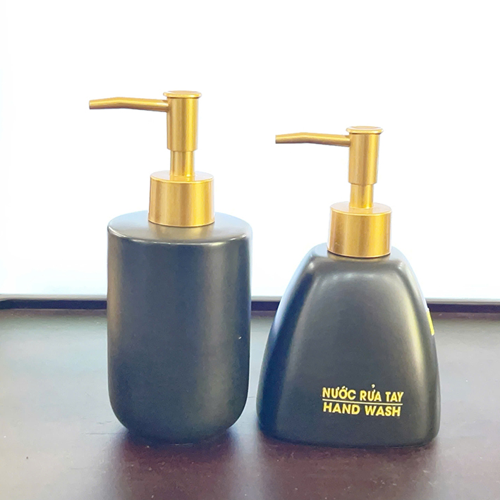 Bình đựng nước rửa tay, xà phòng, dầu gội, sữa dưỡng thể được làm từ đất cao lanh, nung ở nhiệt độ cao nên khử hoàn toàn tạp chất.