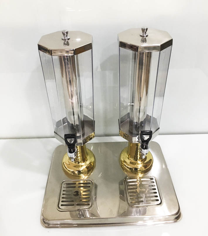Bình nước bát giác đôi mạ vàng là sản phẩm hữu ích, tiện lợi giúp nhà hàng, khách sạn. Mang đến cho các khách hàng những cốc nước thơm ngon nhất và hương vị tuyệt vời nhất. Bình được thiết kế với phong cách sang trọng và hiện đại với sự kết hợp giữa inox cao cấp 304 và nhựa mica cap cấp. Sản phẩm đang là món đồ dùng đang được bán chạy nhất trên thị trường hiện nay.