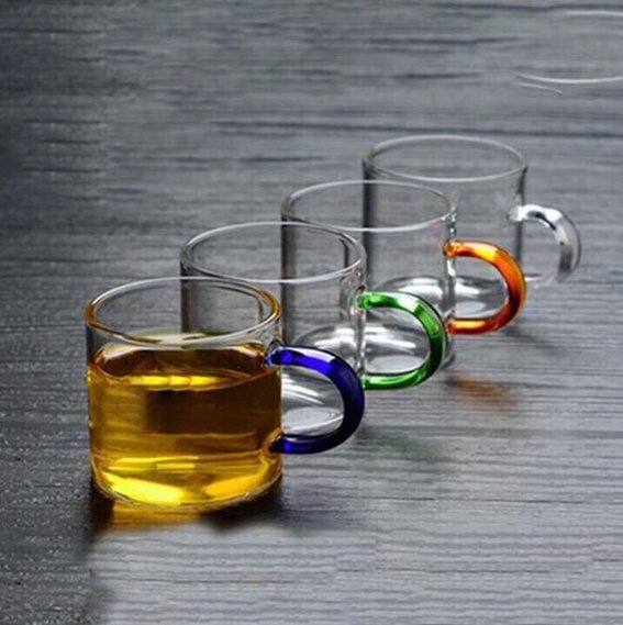 BỘ 6 CỐC UỐNG TRÀ BẰNG THỦY TINH được chế tạo tinh sảo với quai cầm đa màu sắc. Dùng để trang trí trên bàn trà thêm sinh động và bắt mắt. Chất liệu thủy tinh cao cấp có thể chịu được nhiệt tốt, dùng để uống trà nóng vô cùng thích hợp. Sản phẩm gồm 1 bộ 6 cốc trà nhỏ.