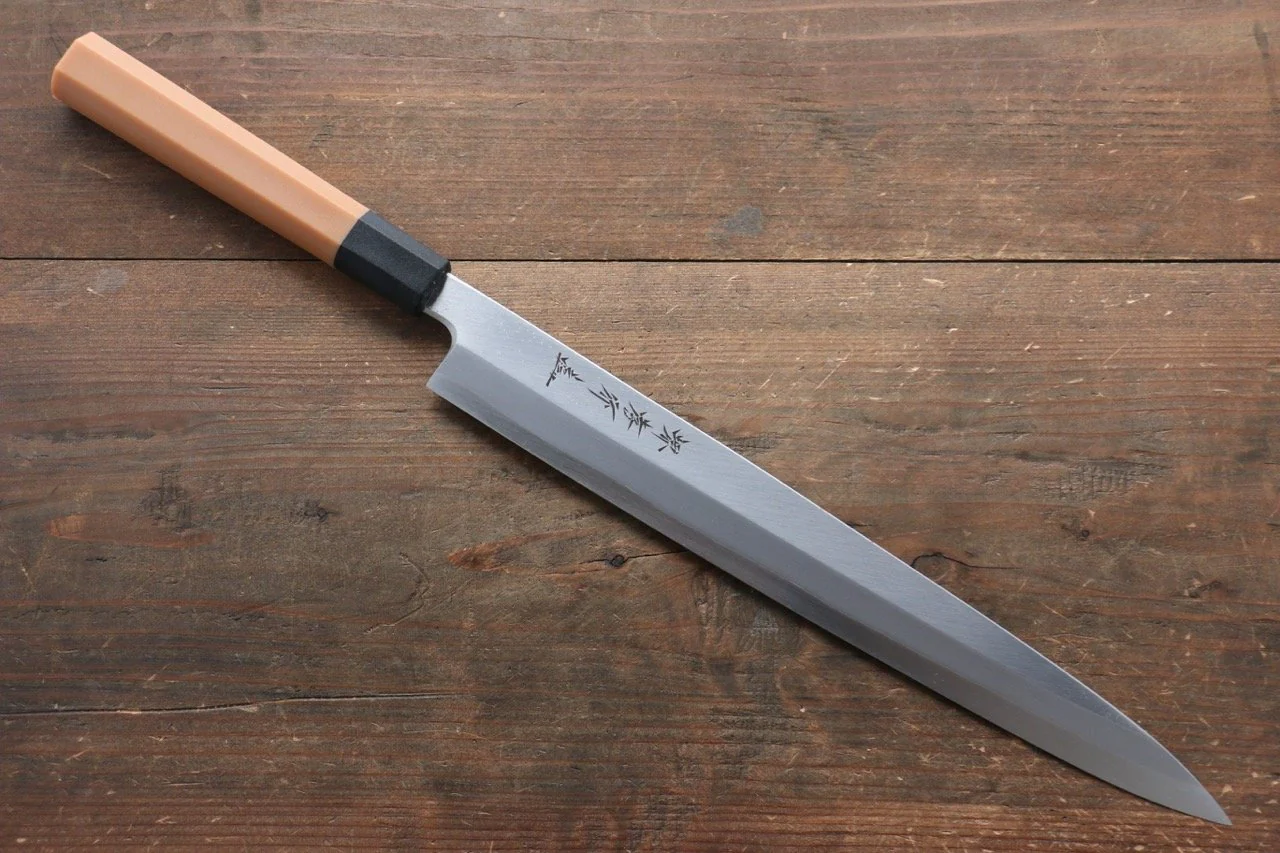 Dao Yanagiba: Chuyên dùng để cắt lát sashimi mỏng, sắc bén giúp giữ nguyên cấu trúc thớ thịt cá.