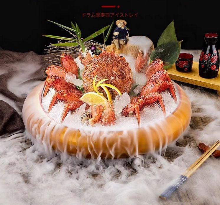 Đá khô hoặc đá viên: Giữ lạnh món sashimi, đặc biệt trong các setup tiệc ngoài trời hoặc quầy buffet.
