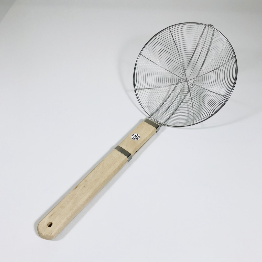 – Phần tay cầm được làm bằng gỗ được vít chặt với phần chao lỳ. Giúp dễ dàng vớt lấy thực phẩm khỏi dầu mỡ nóng hoặc nước sôi.