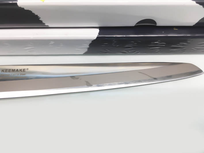 – Lưỡi dao bằng thép không gỉ rất sắc bén: giúp thái những lớp sashimi trở nên dễ dàng và bắt mắt hơn. Dao còn được tặng kèm chiếc nhíp gắp xuong răm vô cùng tiện dụng.
