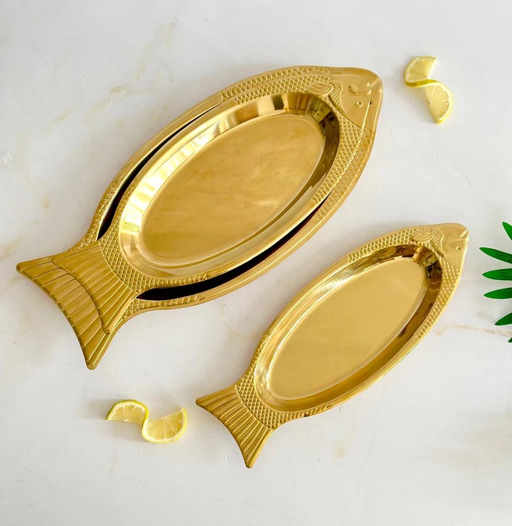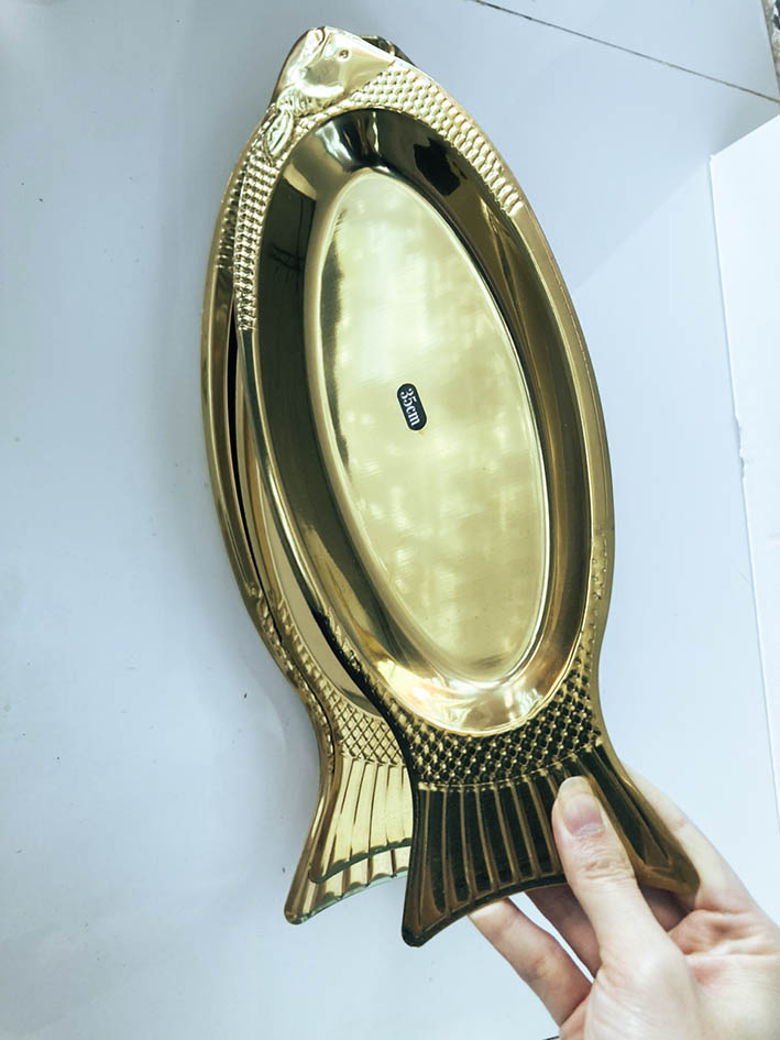 Khay trưng bày cá inox mạ vàng là sản phẩm rất thích hợp dùng trưng bày các món ăn được chế biến từ Cá. Khay giúp tạo nên cảm giác đẹp mắt cho đồ ăn. Giúp bàn ăn trở nên sang trọng. Thích thú đối với các thực khách.