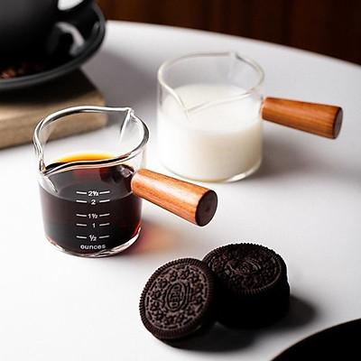 - Chất liệu : Thủy tinh chịu nhiệt cán tay cầm gỗ có chia vạch rất thuận tiện trong việc pha chế