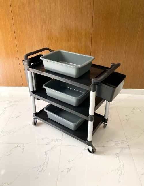Xe đẩy phục vụ 3 tầng màu đen mẫu 3 gồm: