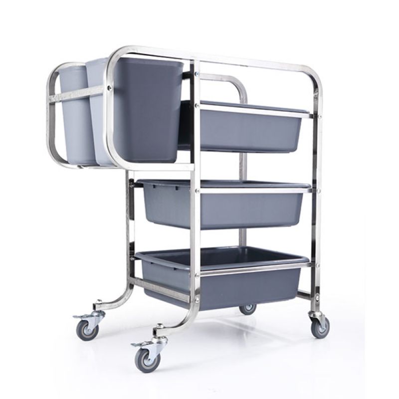 – Khung xe thu dọn bát đĩa làm từ chất liệu Inox cao cấp có độ chắc chắn, cứng cáp.