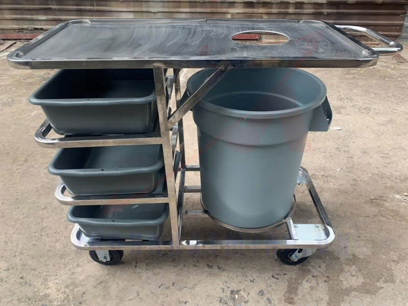 Xe thu gom thức ăn có hộc rác có thiết kế thông minh và vô cùng tiện dụng. Thay vì phải bưng một đống thức ăn thừa. Thì giờ đây bạn có thể nhanh chóng xếp gọn vào từng thùng một cách nhanh chóng. Với hệ thống 04 bánh êm ái giúp bạn đẩy dễ dàng đến từng bàn, không phải mất sức, tốn nhiều thời gian. Điều này còn đảm bảo công việc đạt hiệu quả và năng suất cao hơn, giảm thiểu sức lao động ở mức thấp nhất.
