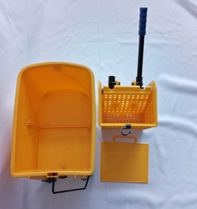 - Thùng chứa và dụng cụ vắt nước được làm từ nhựa cao cấp cứng cáp và chắc chắn. Không bị mài mòn, không dễ bị méo móp và hỏng vỡ khi bị va chạm.